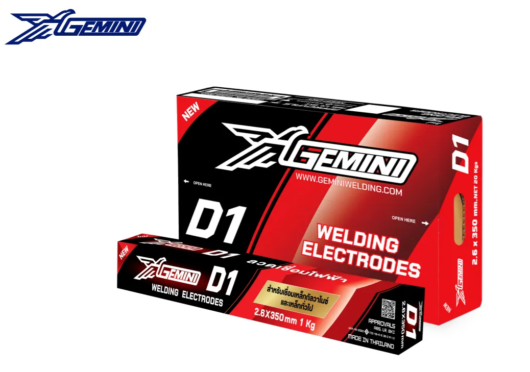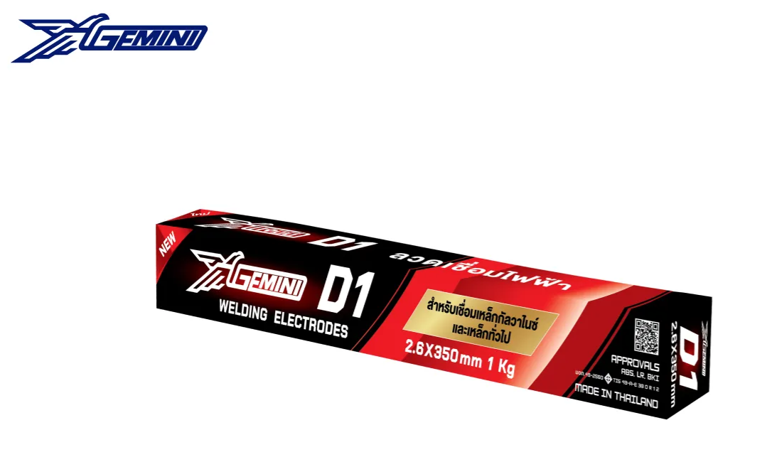 ลวดเชื่อม GEMINI D1 (เจมินี่ ดี 1) เป็นลวดเชื่อมไฟฟ้าชนิดสารพอกหุ้มประเภทไทเทเนีย (Titantia type) ที่ใช้สำหรับเชื่อมเหล็กคาร์บอนปานกลางและคาร์บอนต่ำ การอาร์คเรียบ เกล็ดแนวเชื่อมเรียบสม่ำเสมอ ไม่เกิดรอยกัดลึกที่ขอบแนวเชื่อม ทนต่อการแตกร้าว สแลกหลุดร่อนง่าย ลวดเชื่อม GEMINI D1 เหมาะสำหรับงานเชื่อมเหล็กโครง เหล็กแผ่นบางในงานเชื่อมเรือเดินทะเล รถไฟ ท่อและโลหะแผ่นบาง เป็นต้น