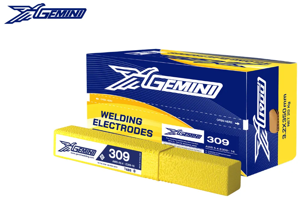 ลวดเชื่อมเจมินี่ 309 ,AWS A5.4 E309-16 เป็นลวดเชื่อมสเตนเลสสารพอกหุ้มประเภทไทเทเนีย โครงสร้างของเนื้อเชื่อมจะเป็นออสเทนนิติกเฟอร์ริติก เหมาะสำหรับงานเชื่อมเหล็กกล้าที่มีส่วนผสมของธาตุโครเมียมนิเกิลโมลิบดินั่ม แนวเชื่อมทนต่อการกัดกร่อนสูง สามารถเชื่อมโลหะต่างชนิดกันได้ เช่น สเตนเลสกับเหล็กเหนียว และสามารถเชื่อมรองพื้นก่อนเชื่อมพอกผิวได้ การอาร์คนิ่ม แนวเชื่อมสะอาด เม็ดโลหะกระเด็นน้อย