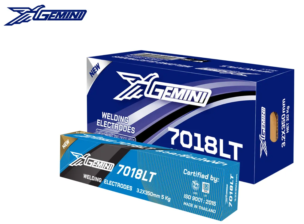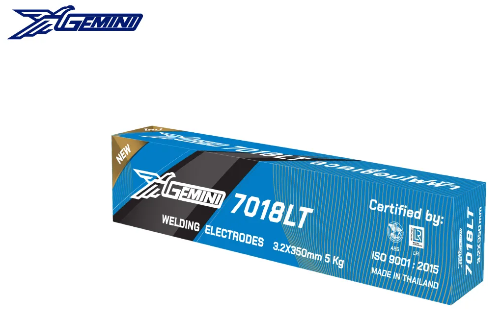 ลวดเชื่อมเจมินี่ 7018LT ,AWS A5.1/E 7018 เป็นลวดเชื่อมเบสิกชนิดไฮโดรเจนต่ำ ออกแบบพิเศษสำหรับงานเชื่อมเหล็กกล้า เหล็กกล้าละมุน เหล็กกล้าทนแรงดึงปานกลาง แนวเชื่อมสามารถทนแรงกระแทกได้สูงในสภาวะอุณหภูมิต่ำถึง -20 C ํ เหมาะกับ งานโครงสร้างสะพาน งาน โครงสร้างตึกและงานเชื่อมถังบรรจุผลิตภัณฑ์แรงดันสูง โดยจะเพิ่มเนื้อเชื่อมมากกว่าปกติ